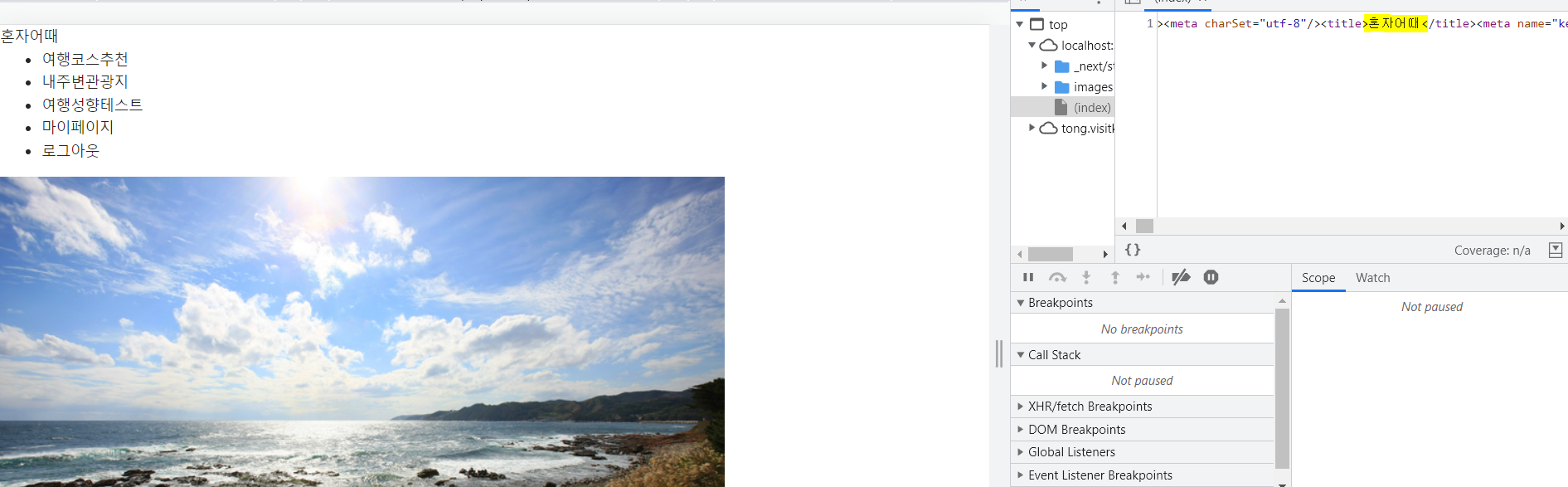 Next.js로 개발한 웹은 HTML에 기본적인 정보가 들어있기 때문에 아래와 같이 index에 담겨있는 기본적인 정보를 볼 수 있다.
