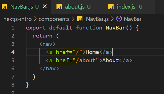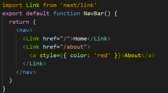 그럼 a태그는 어디에 사용하는 것일까? Link태그 말고도 next.js의 useRouter를 이용하여 페이지를 이동 시킬 수 있다. 하지만 아래에서는 next.js에서 a태그를 사용하는 것을 보여주겠다. a태그는 link를 연결하는 것이 아닌 Link 태그에서 적용 시킬 수 없는 style이나 className같은 속성을 추가하는데 사용한다.
