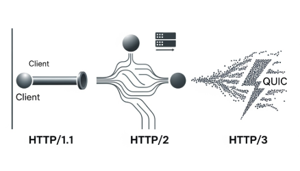 HTTP/3 (2022, IETF 표준화) : *QUIC(UDP) 기반 프로토콜, HOL 문제 해결, TLS 1.3 내장 → 모바일 환경 최적화