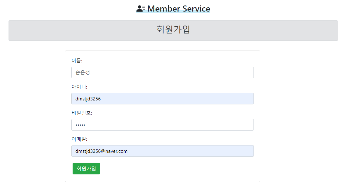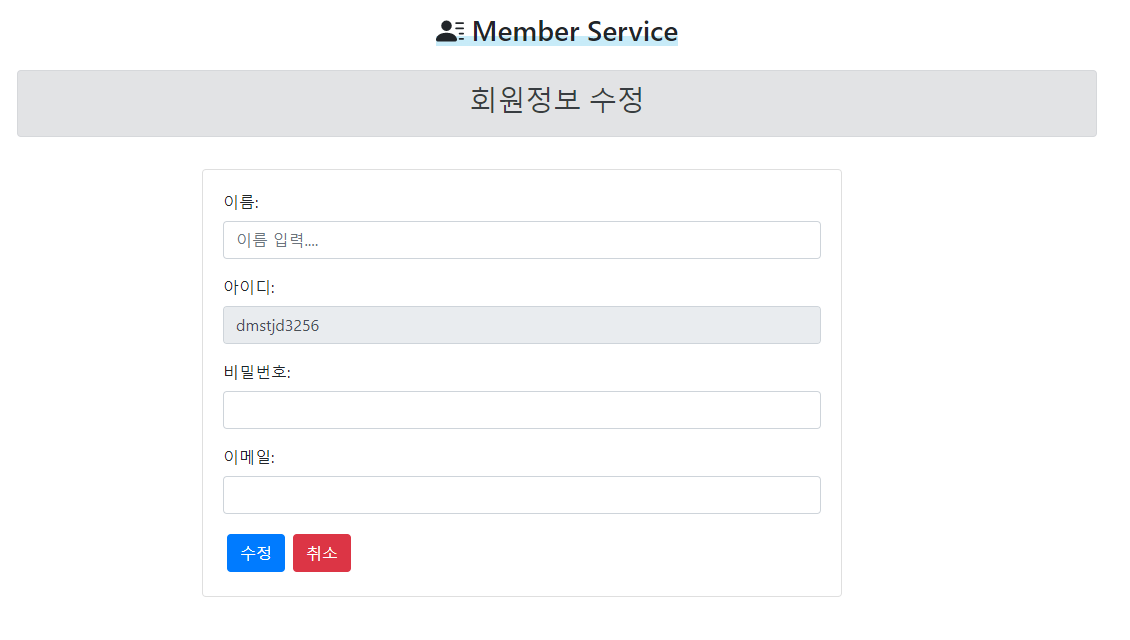 아이디는 변경할 수 없도록 readonly 처리를 해주었다.