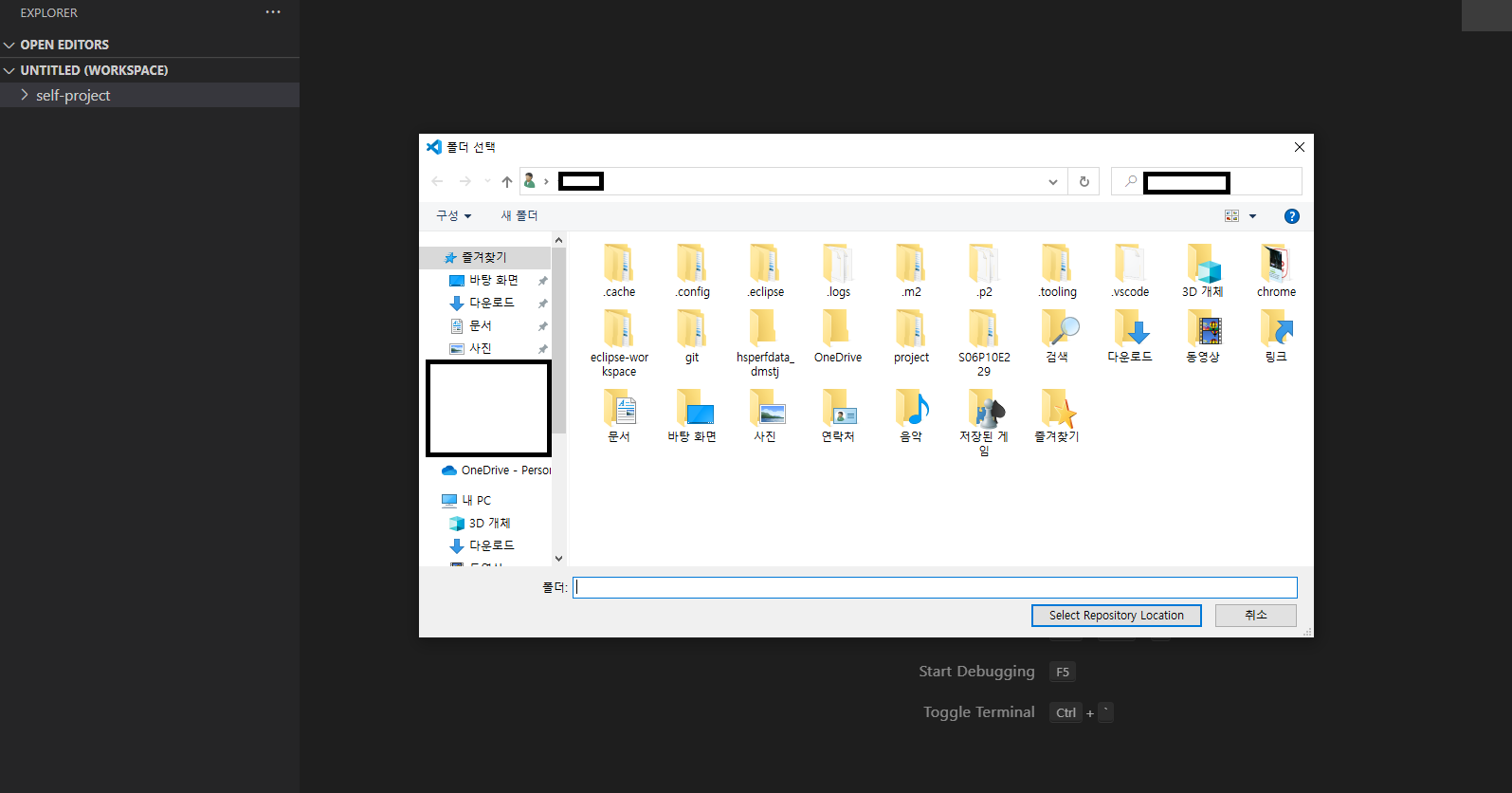 4. 원하는 위치의 폴더를 지정한다. (관리하기 편한 위치를 해주는 것이 좋음)