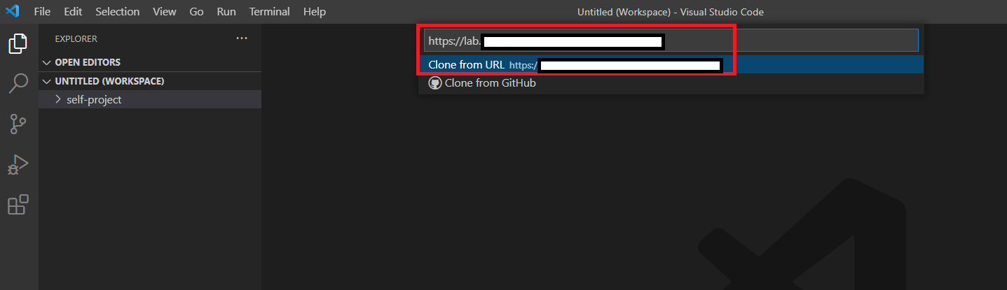 3. 가져온 주소를 붙여넣은 다음 Clone from URL을 선택한다.