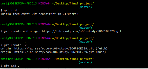 - git remote add origin [repository 주소]