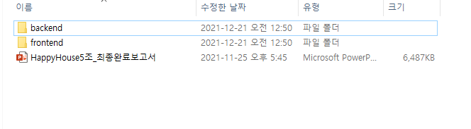 git status를 통해 올리고자 하는 backend, frontend, ppt 파일이 잘 들어있는지 확인할 수 있음