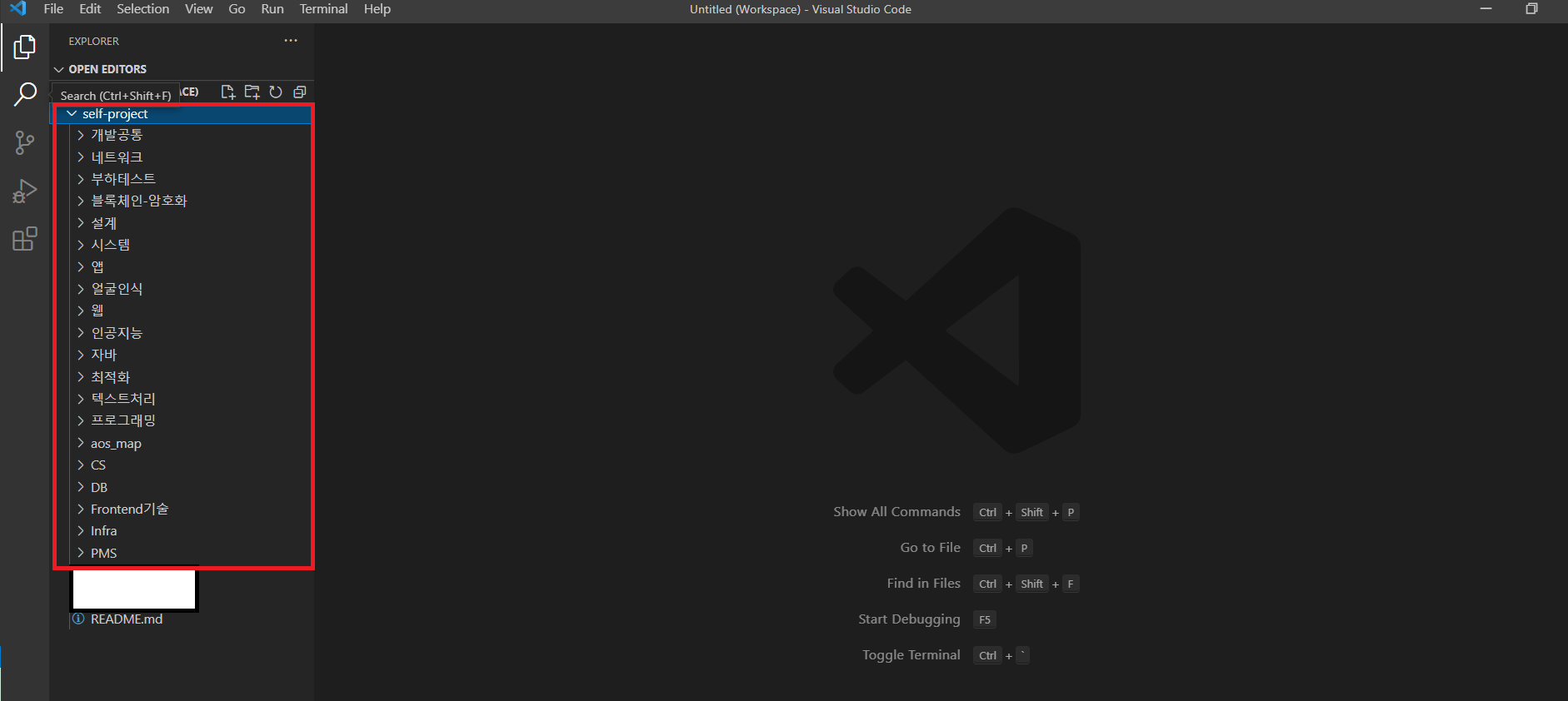 6. 그럼 workspace에 왼쪽과 같이 Git에 있는 폴더들이 나온다.