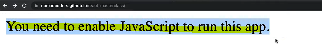 크롬에서 JS를 비활성화 시킨 상태에서 client-side render 방식과 static pre render방식을 비교하면 client-side render방식에서는 HTML에 아무런 정보가 없기 때문에 아래와 같은 에러가 뜨고