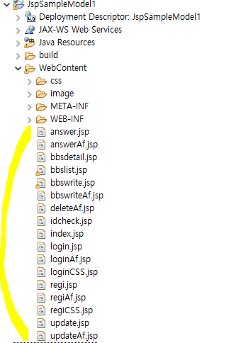 - 기능이 추가될 때 마다 form.jsp같이 입력될 페이지가 필요하고, 입력받은 내용을 처리하기 위한 jsp파일이 하나씩 추가가 될 것이다.