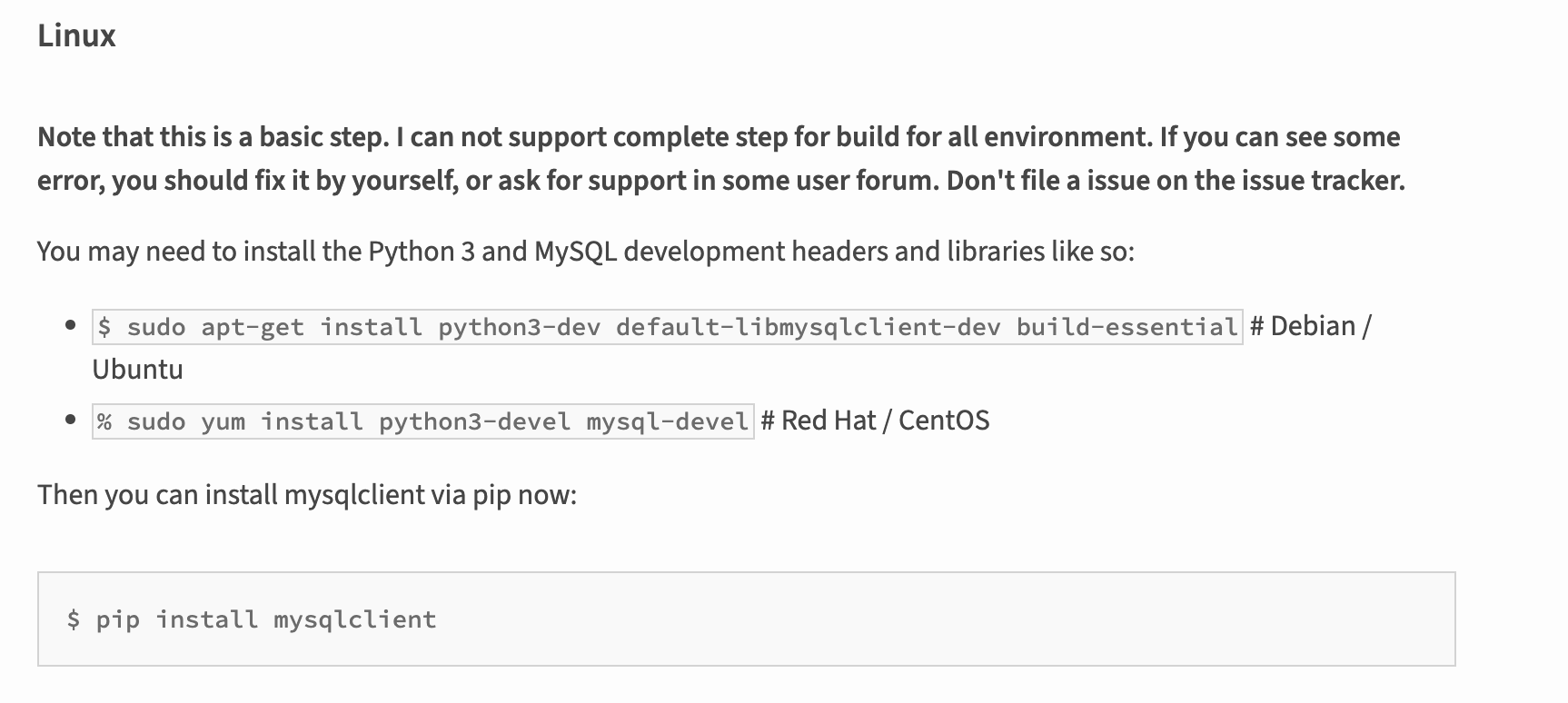 sudo yum install python3-devel mysql-devel