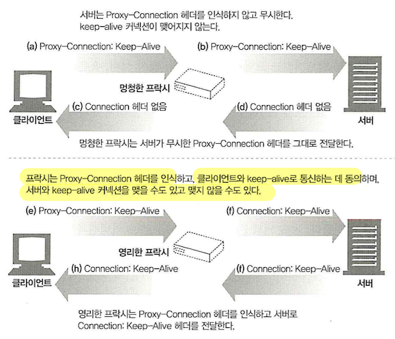 1. 멍청한(Dumb) 프락시는 이 헤더를 이해하지 못하고 제거하지 않은 채 다음 홉(서버)으로 전달