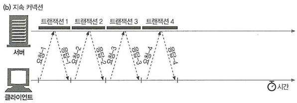 - 클라이언트가 요청 시 Connection: Keep-Alive 헤더를 명시해야만 커넥션이 유지됨.