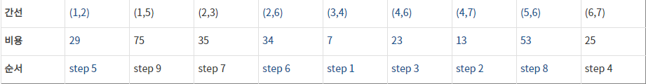 - 간선 데이터를 비용에 따라 오름차순으로 정렬한다.